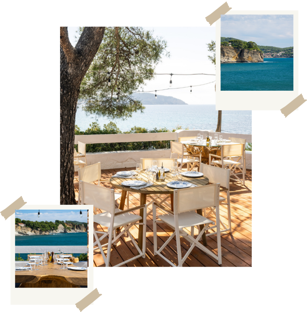 En hauteur, Sous les Pins dévoile une terrasse perchée avec vue panoramique sur la baie de l’Arène Cros à la Ciotat. Dans ce cadre exceptionnel, nous vous proposons une carte méditerranéenne plus raffinée, entre terre et mer, où chaque plat s’accorde avec la beauté du paysage.